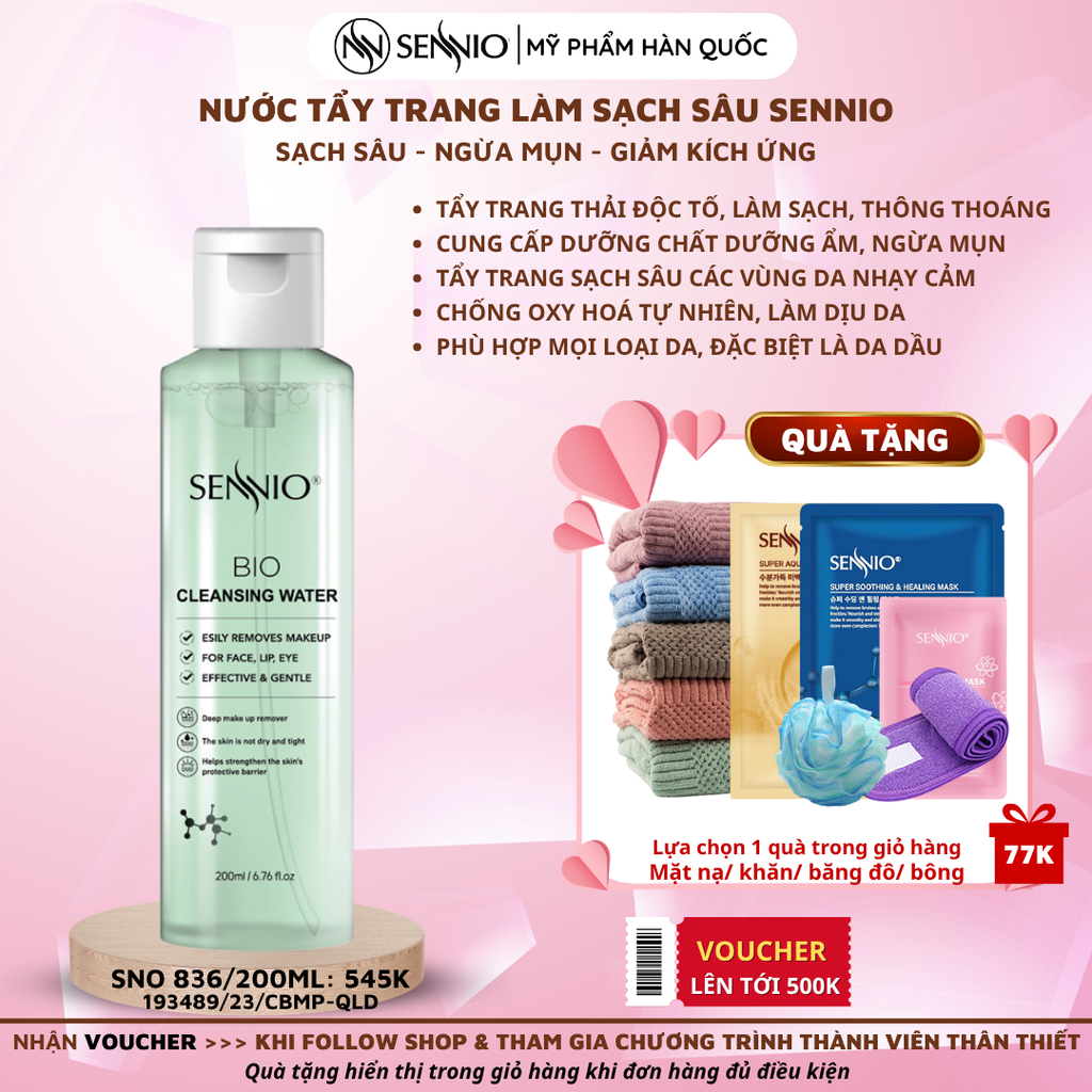THÔNG TIN SẢN PHẨM NƯỚC TẨY TRANG LÀM SẠCH SÂU BẰNG PH CHO DA SENNIO :